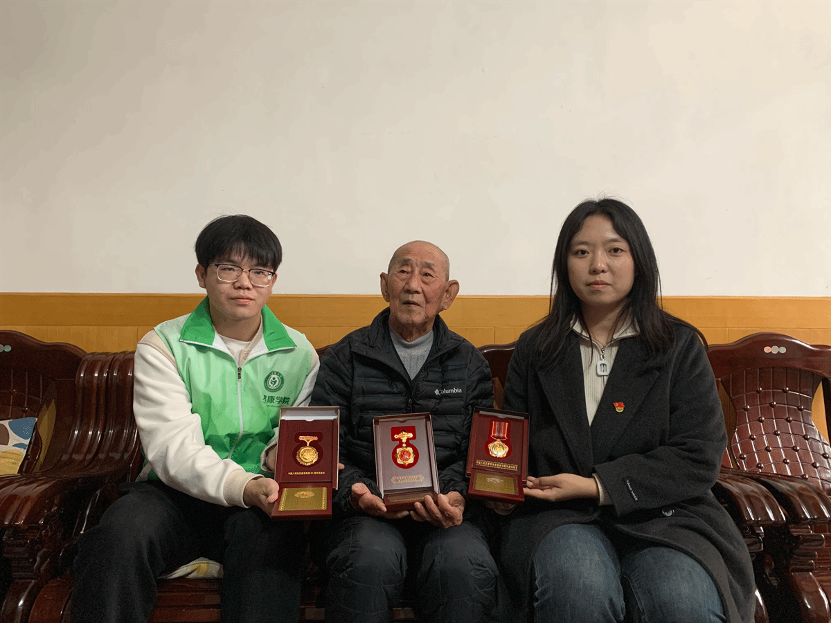 在社区工作人员的带领下,学生代表们来到抗美援朝老兵家中。老人拿出珍藏的中国人民抗日战争胜利80周年纪念章、庆祝中华人民共和国成立70周年纪念章等多枚荣誉勋章,一一介绍背后的故事。他用朴实的语言缓缓讲述抗美援朝战场上的烽火岁月——硝烟弥漫的阵地、战友间的生死扶持、保家卫国的坚定信念,每一个细节都深深触动着在场学子的心。大家围坐聆听,在沉浸式的讲述中感悟革命先辈的英勇无畏,体会和平生活的来之不易。