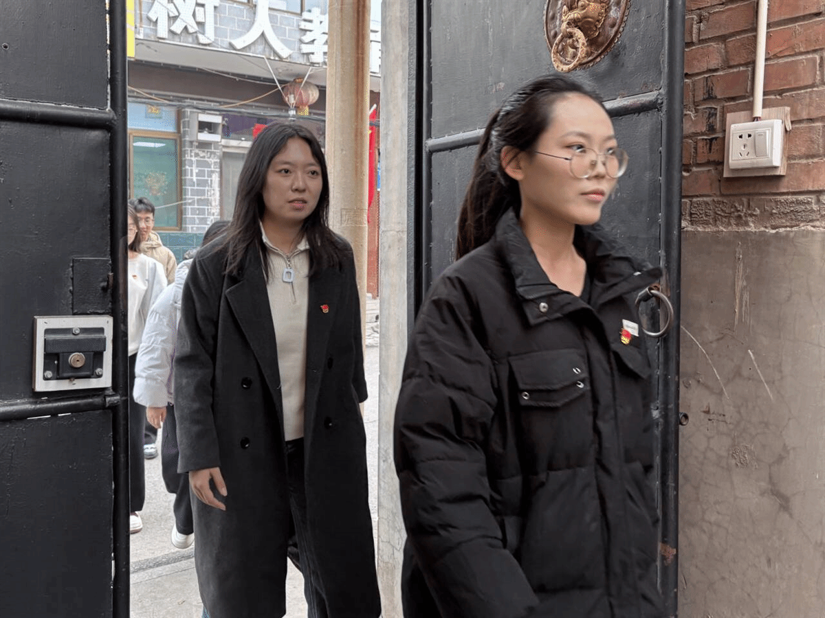 活动首站,学生代表们来到鼓楼社区服务中心,社区贾敏书记围绕国际时事展开分享,叮嘱同学们“不忘历史方能砥砺前行”,并为青年学子的成长发展提出建议。学生党员张艳花就历史学习与青年责任积极提问,现场互动氛围热烈。座谈结束后,学生代表与社区工作人员在“峥嵘解码红色故事‘云备份’”主题背景前拍摄合影,记录下活动的重要瞬间。