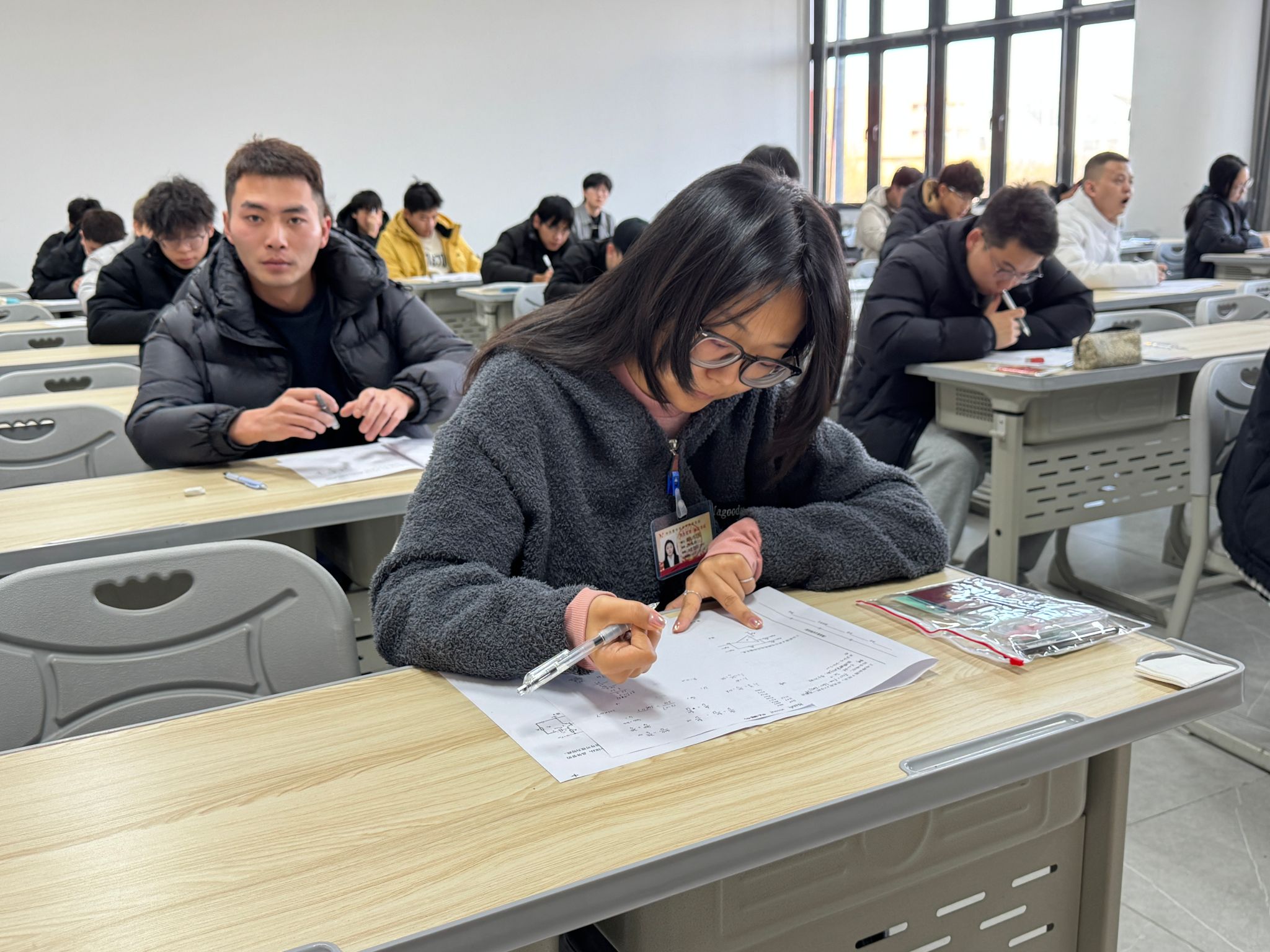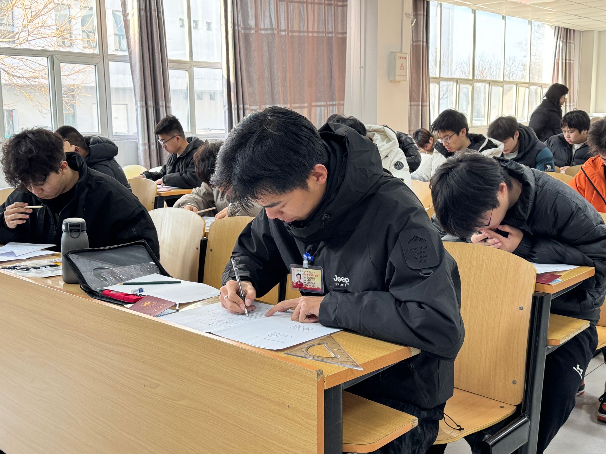 考试现场,学生党员挂牌有序就座,严格遵守考场纪律,认真作答、诚信应考,展现出良好的党性修养和自律品格。此次考试并非终点,而是诚信践行的新起点,学生党员以实际行动践行党员义务,展现出严于律己、以身作则的良好风貌,为全体考生树立了榜样。