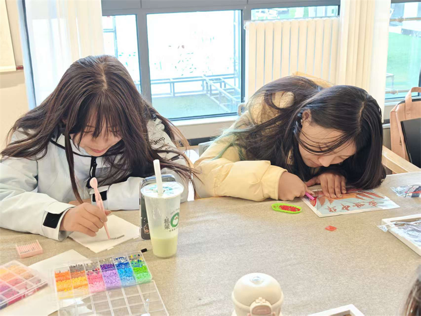为进一步丰富党组织生活形式,增强主题党日的吸引力与实效性,2026年3月18日,晋中信息学院艺术传媒学院学生第一、第二党支部以“理论学习+手工创作”相结合的方式开展了 “三月春风暖·匠心颂党恩”的主题党日活动。本次活动将传统手工艺与理论教育相结合,组织学生党员同志通过拼豆、泥塑、竹编风铃、竹编画、钻石画等手工创作,表达对党的深情祝福,厚植爱党爱国情怀。