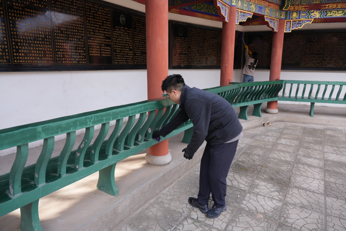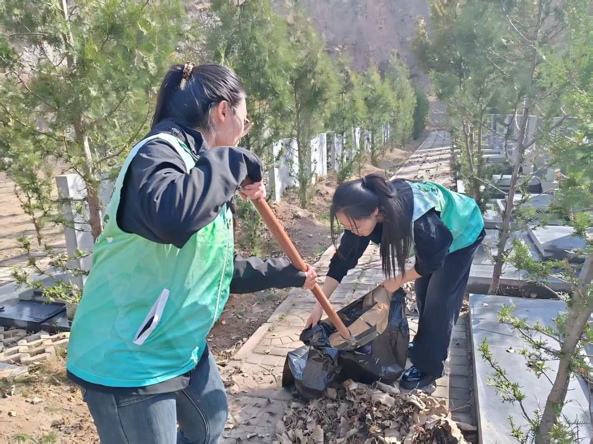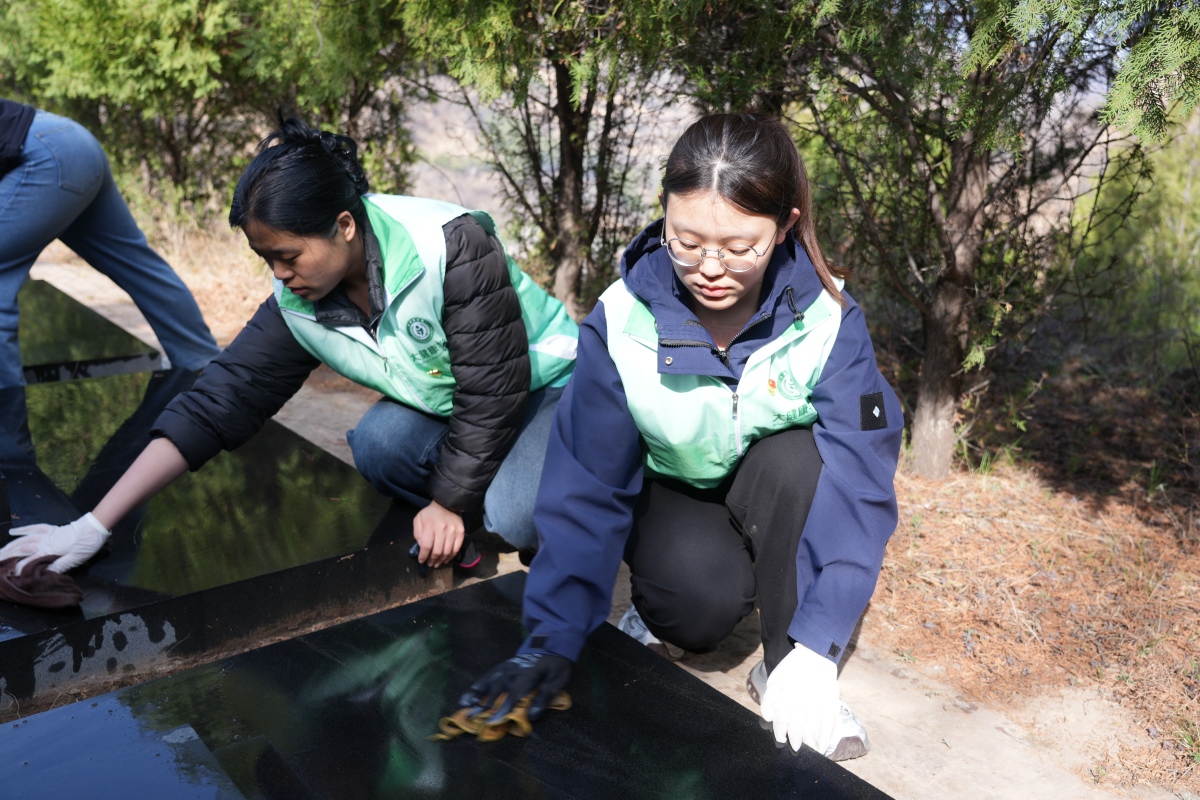 活动正式开始前,教工党员与学生党员们率先开展陵园清扫志愿服务。大家手持清洁工具,仔细擦拭烈士墓碑,认真清理陵园内的杂草、落叶与杂物,细心擦拭纪念碑上的浮尘,以躬身实干的实际行动,表达对革命先烈的深切敬意与追思,用整洁肃穆的环境,为祭扫仪式营造庄重氛围,让每一处细节都承载着对英烈的缅怀之情。