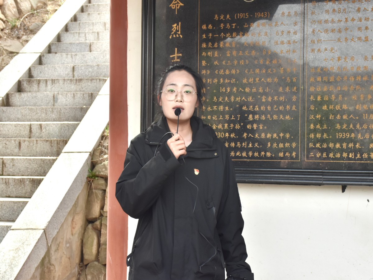 仪式尾声,全体人员按顺时针方向有序瞻仰烈士纪念碑,并依次上前献花,以鲜花寄哀思,以行动敬英雄。师生党员手持鲜花,缓步上前郑重敬献,轻轻将鲜花摆放在纪念碑前,用最质朴的方式表达对革命先烈的缅怀与敬意。最后,工作人员代表讲述红色革命故事,通过鲜活的革命事迹,带领在场人员重温红色岁月,学院党员们认真倾听、用心感悟,让英烈精神直抵人心,接受了一堂生动深刻的红色教育课。活动最后,设置交流发言环节,张艳花、李佳璐两位同学先后分享学习感悟,结合自身学习与工作实际,畅谈对英烈精神的理解,纷纷表示将以先烈为榜样,坚定理想信念,强化责任担当,在新时代传承红色血脉、践行初心使命。