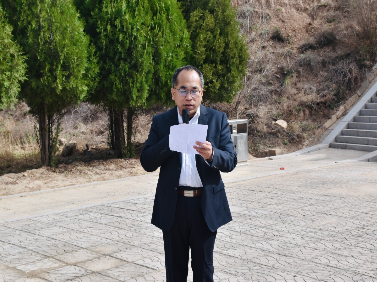随后,全体人员脱帽肃立,向烈士默哀1分钟。静默之间,师生党员低头沉思,追忆英烈们为国家独立、民族解放、人民幸福浴血奋战的光辉历程,深刻体会今日幸福生活的来之不易,在静默中接受心灵的洗礼,感悟英烈的崇高精神。默哀结束后,退役军人事务局局长石问鼎缓步上前,饱含深情地宣读祭文,字里行间满含对革命先烈的深切缅怀与崇高敬意,师生党员们认真聆听,深刻领会英烈精神的不朽价值。